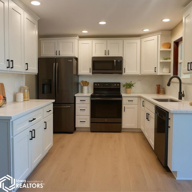 Everything you have been waiting for! You are going to love this sleek family friendly 5 bedroom, 3 bath ranch home nestled on a quiet cul-de-sac in vibrant Jefferson, Iowa. Situated with a full extra side yard on a double lot, this property is nearly half an acre with tons of room for activities or expansion! You'll also love the oversized deck, fire pit and landscaping. As you step inside, you're greeted by a bright and inviting open-concept floor plan that seamlessly blends living, dining, and kitchen areas. The new modern fixtures, flooring, and updated look will leave you wow'ed! Three spacious bedrooms on the main level and two additional bedrooms in the lower level. The finished basement will be the favorite hang out or a private retreat for guest. A 5 star energy rating in 2007 that is good for 20 years will give you a peace of mind.